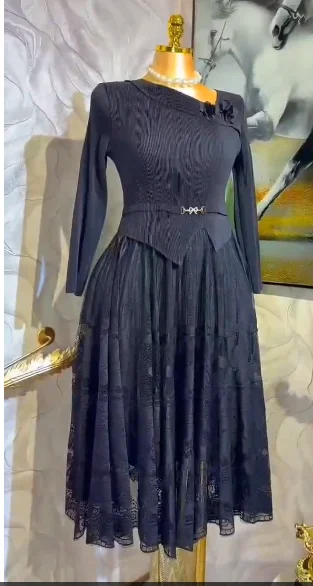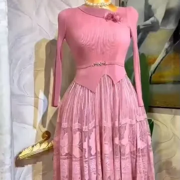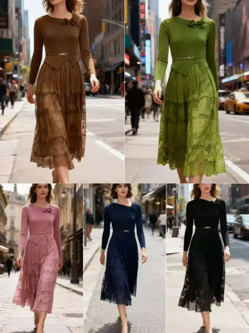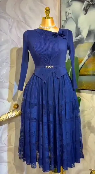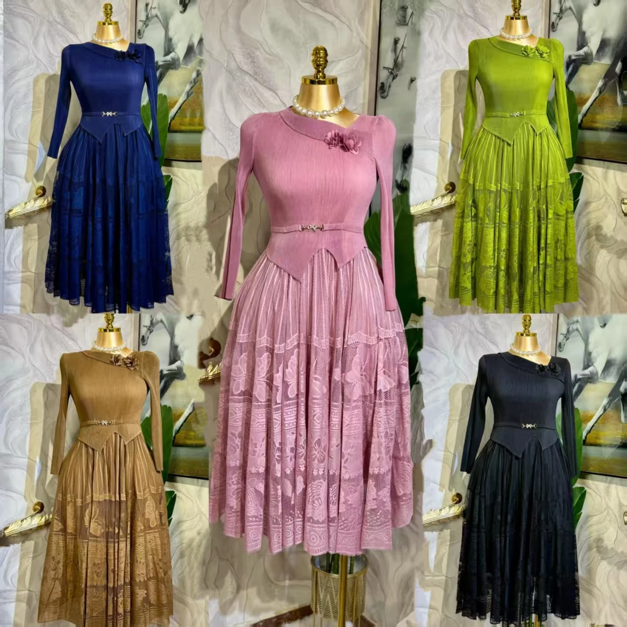 Latest Miyaki Elegant Fashion Temperament V-Neck Long Sleeves Pleated Plus Size Solid Color Women Ladies Party Dress
